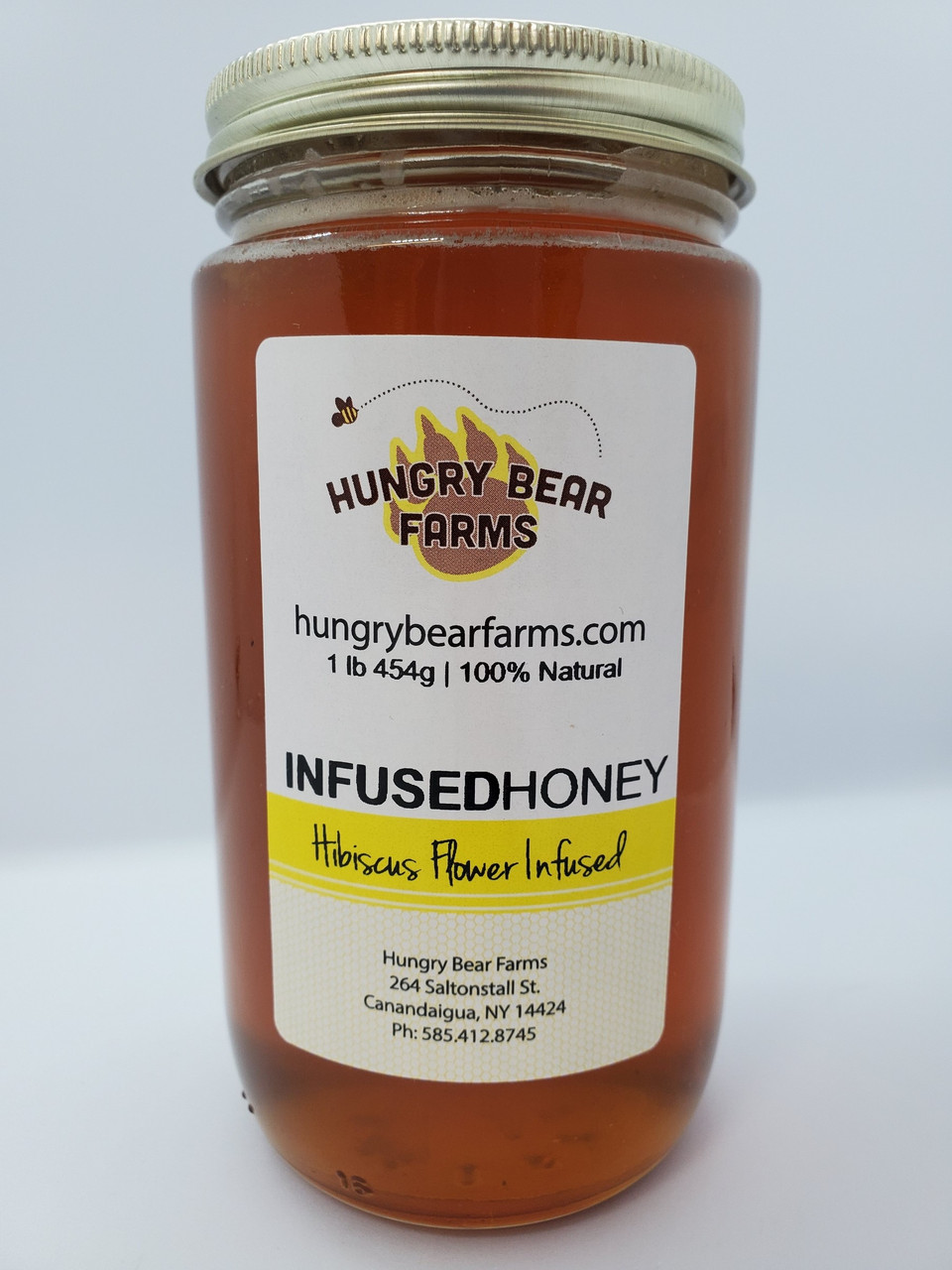 Our pure honey is the best honey out there in NY's Finger Lakes! All our honey is raw and unpasteurized so it retains all it's health benefits and is great for those with allergies. Our Hibiscus Flower Infused Honey is made with Hibiscus blossoms and our own wildflower honey. Enjoy the delicious taste of hibiscus & honey on biscuits, bread, in your tea, baking with it or as a delicious treat on icecream. Or simply just enjoy a spoonful of this delicious honey!