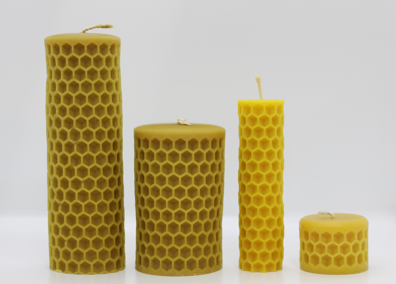 Our Beeswax Bee Cell Pattern Candles are great as gifts, favors or simply as a decorative candle in your home. Enjoy the sweet smell of honey as your candle burns. Great for those that have allergies or reactions to strong smells as beeswax burns clean and without leaving any residues. Our candles are all made from beeswax we've rendered down from our beehives. All our wax is 100% Beeswax with nothing else added. No fragrances, dyes or chemicals used with rendering, cleaning and making our beeswax candles.